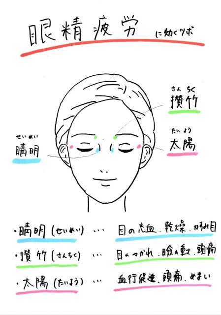 ☆眼精疲労に効くツボ(ツボの場所 期待される効果)